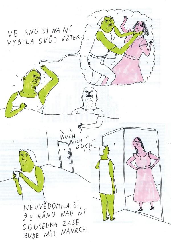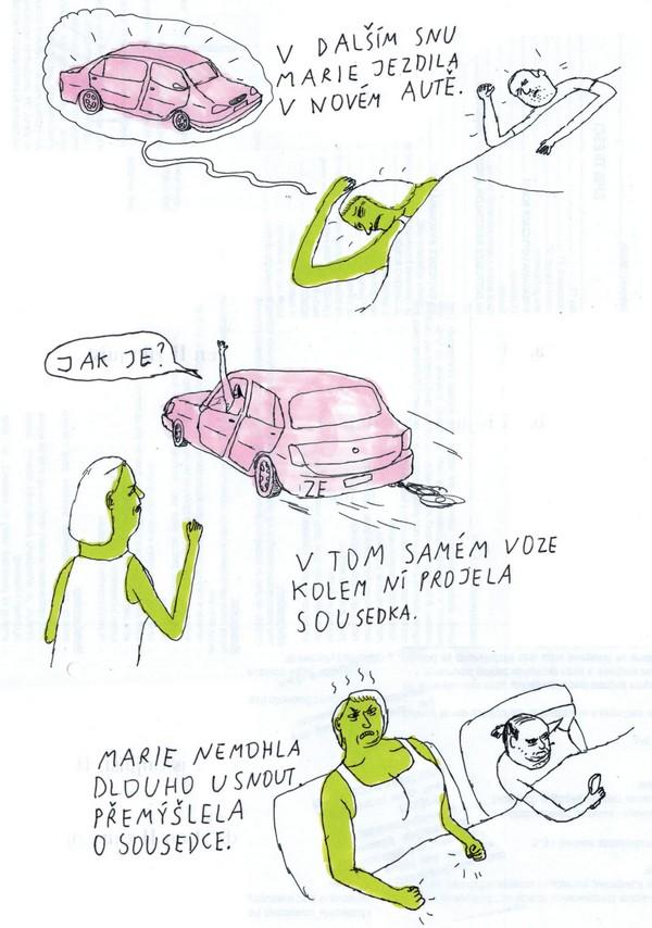 Po probuzení se však opět ocitají v apatii a osamění. Koza, se svým typickým naturalistickým pohledem, vykresluje trápení i tužby napříč generacemi – od lidí kolem dvaceti až po padesátníky. Začíná jejich zlý sen ve chvíli, kdy položí hlavu na polštář, nebo když ráno otevírají oči?
